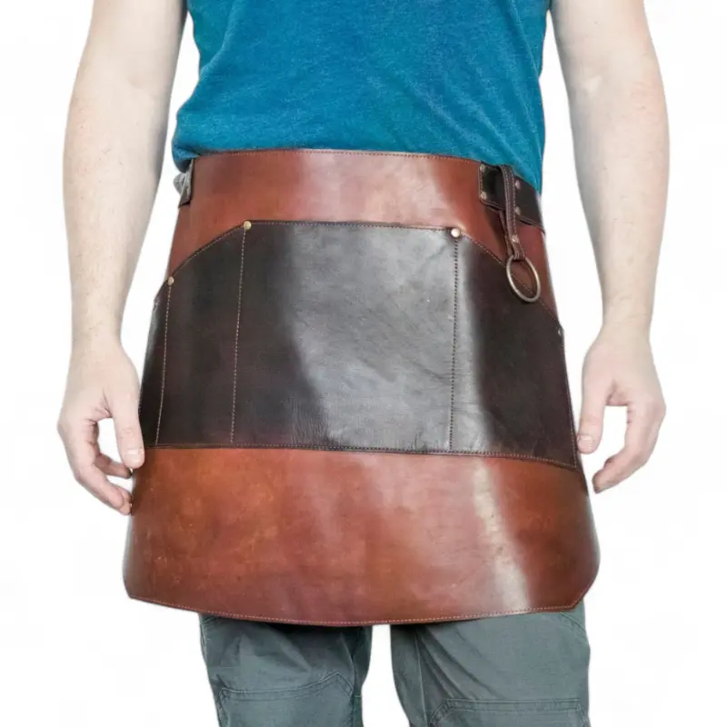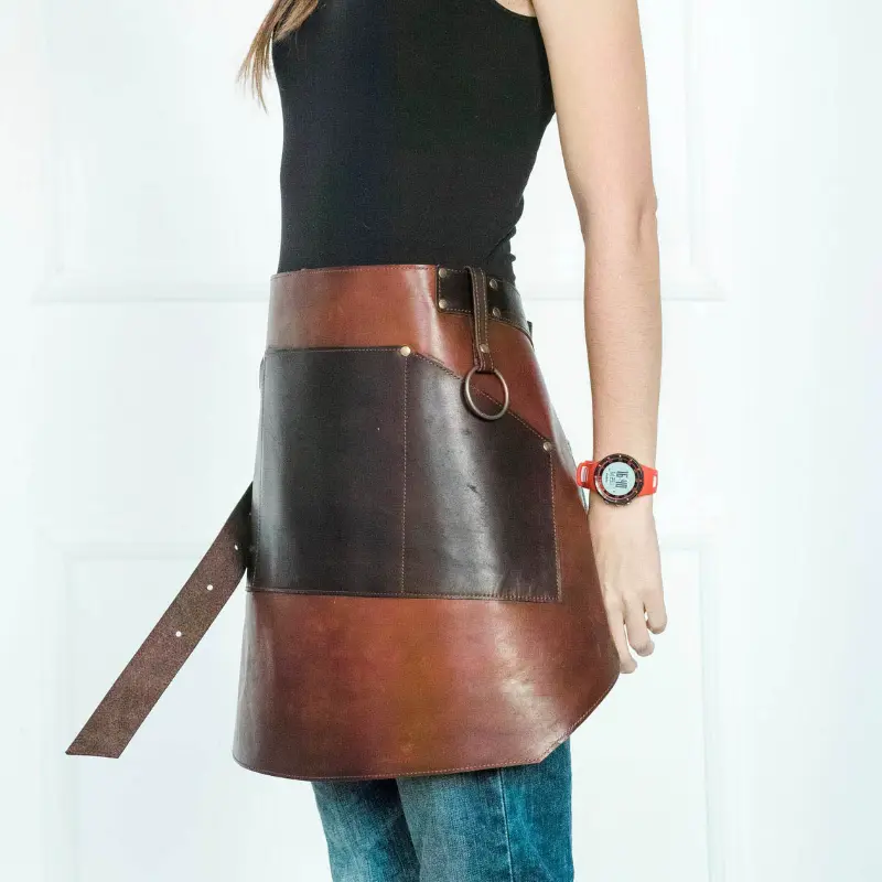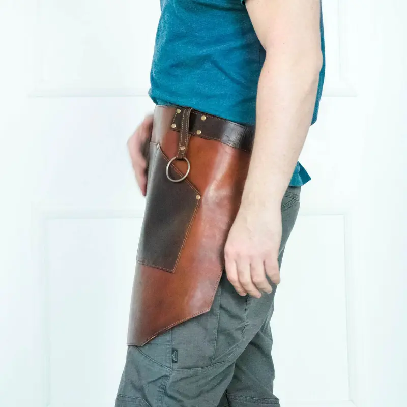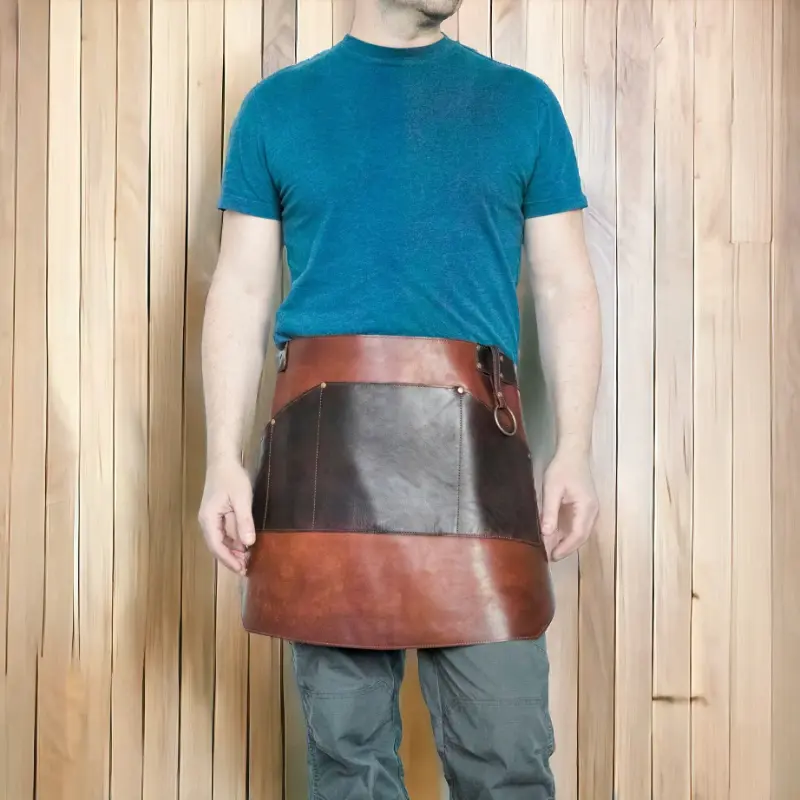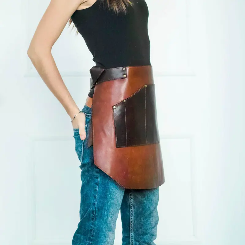 This half leather apron is perfect for bartenders who want a stylish and durable apron to wear while working. The leather adds a touch of sophistication while providing protection from spills and stains.