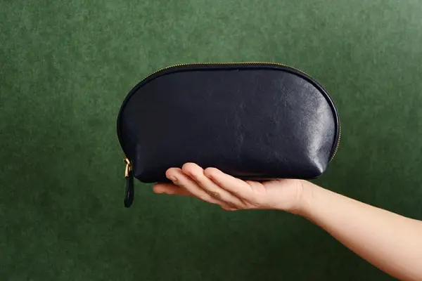 This beautiful leather cosmetic bag is perfect for storing all your makeup essentials while on the go. Made from high-quality leather, it features a spacious interior and a sleek design.