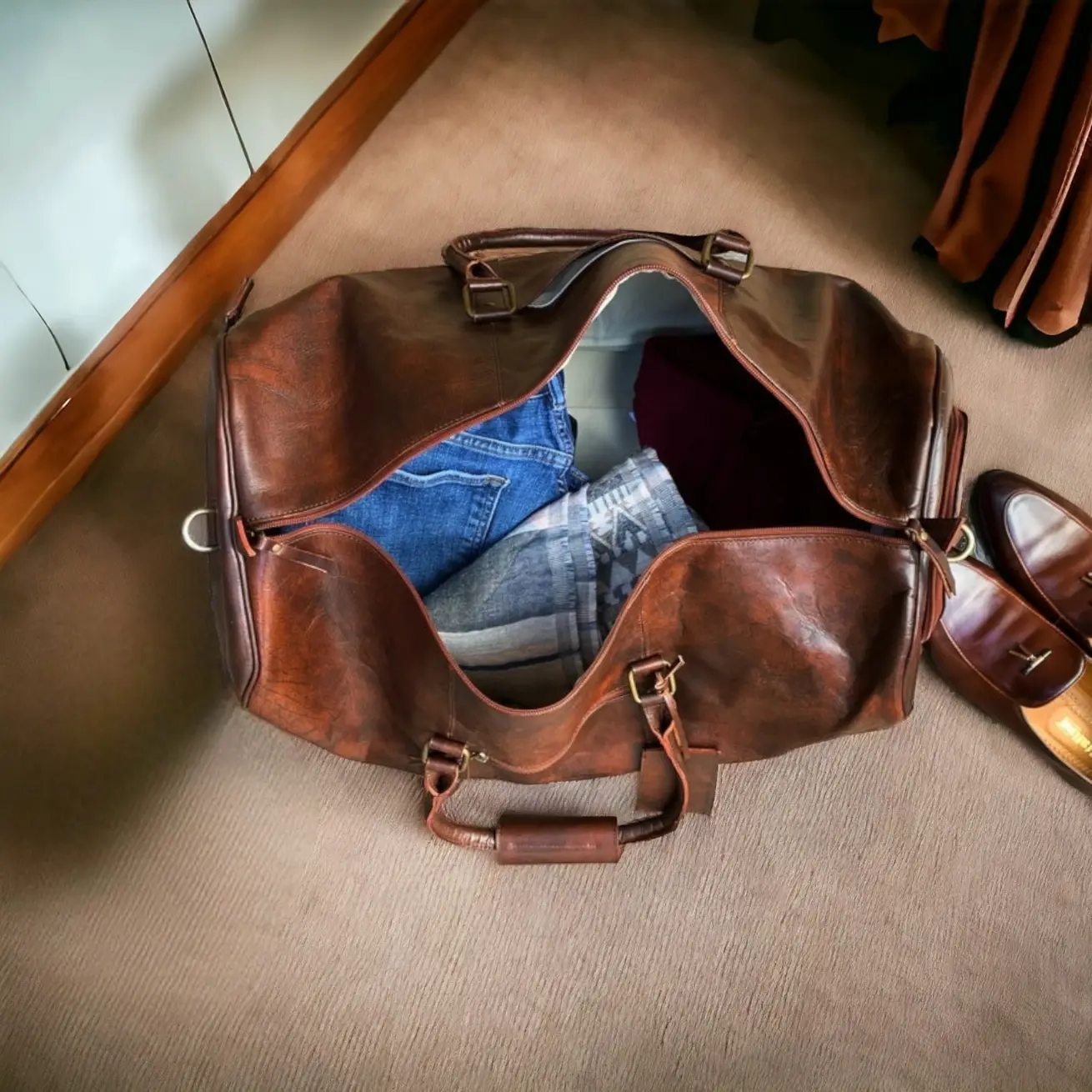 The Stylish Dark Brown Travel Bag with shoe compartment is the perfect companion for your next adventure. Made from durable materials, this bag offers ample storage space for all your essentials, including a separate compartment for your shoes. The dark brown color adds a touch of sophistication, while the stylish design ensures you’ll stand out from the crowd. With its comfortable handles and adjustable shoulder strap, this travel bag is not only practical but also comfortable to carry. Whether you’re going on a weekend getaway or a business trip, this travel bag will keep you organized and looking stylish throughout your journey.