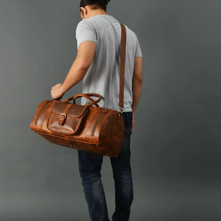 The Travel Luggage Leather Bag is a stylish and durable bag designed to meet all your travel needs. Made from high-quality leather, it features multiple compartments for organized storage, a sturdy handle for easy carrying, and a detachable shoulder strap for added convenience. The bag is spacious enough to hold your clothes, toiletries, and other essentials, while remaining compact and lightweight. Whether you’re heading on a weekend getaway or a business trip, this leather bag is a perfect travel companion that combines functionality with elegance. It is available in various colors to suit your personal style and is built to withstand the rigors of frequent travel. Invest in this timeless piece and travel in style wherever you go.