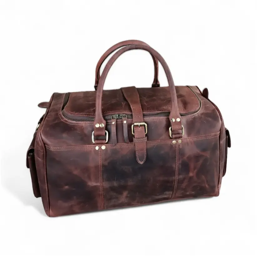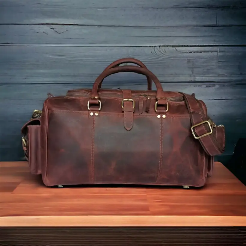 The vintage leather weekender bag is a stylish and durable travel accessory that combines timeless design with practicality. Made from high-quality leather, this spacious bag features multiple compartments and pockets to keep your belongings organized. Its adjustable shoulder strap and sturdy handles make it easy to carry, while the vintage finish adds a touch of sophistication. Whether you’re going on a weekend getaway or a business trip, this weekender bag is the perfect companion to carry all your essentials in style.